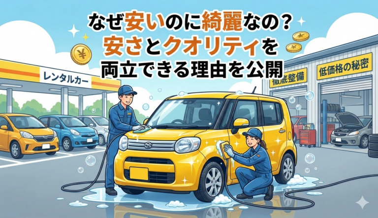 なぜ安いのに綺麗なの?安さとクオリティを両立できる理由を公開【グッドバリューレンタカー御殿場】 2026年2月26日 「格安レンタカーって、正直ちょっと不安……」御殿場でレンタカーを探している方の中には、そんなイメージを持つ方も少なくありません。しかし実際には、価格を抑えつつも“清潔で安心