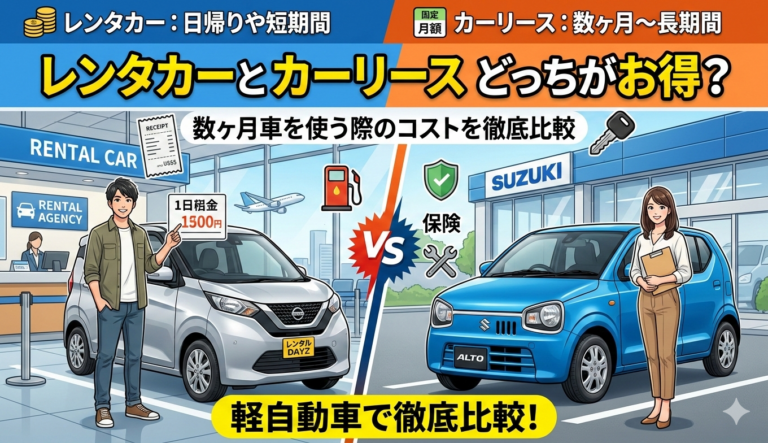 レンタカーとカーリースどっちがお得?御殿場で数ヶ月車を使う際のコストを徹底比較【グッドバリューレンタカー御殿場】 2026年3月9日 御殿場エリアで「数ヶ月間だけ車を使いたい」というニーズが非常に増えています。急な転勤や長期出張、新車の納車待ち、あるいは期間限定のプロジェクトなど、短期間の利用において「レ